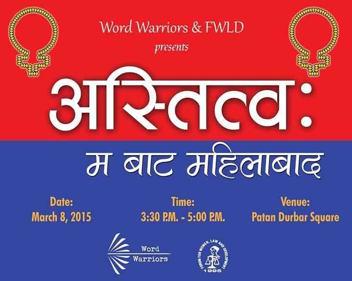 In collaboration Forum for Women, Law and Development (FWLD), Word Warriors will be performing poems on freedom, identity and existence - women's and men's, cause there's no separating the sky.