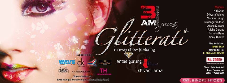 It is with great pleasure that we write to invite you to the launch of our first monthly event "Glitterati" on FRIDAY 1st of AUGUST 2014. Mark your calendar and join us as its going to be an amazing experience and behold to see a new trend in the nepali event culuture.