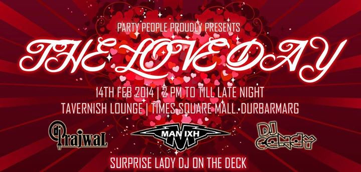 We, Party People Are back Again.. A great party on the Great Day This Valentine day dance and romance NO ENTRY FEE .. NO CHARITY JUST INVITATION Tavernish Lounge, Top Floor, Time Square Complex Durbar Marg For invitation: Sandesh Grg : 9808588848 Sapan Magar : 9808263228 Deejay : Dj E..
