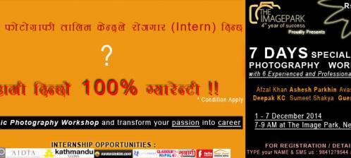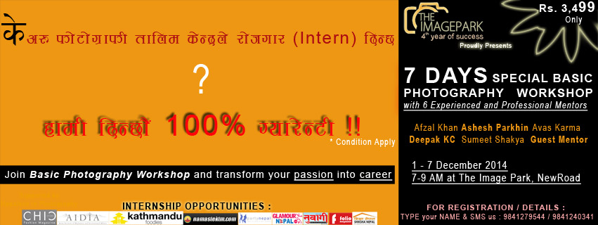 The Image Park presents 7 Days SPECIAL BASIC PHOTOGRAPHY workshop to carter at every level of participants, whether you are a student, photography enthusiasts or interested in pursuing a career in photograph