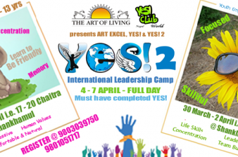 "My experience at this course was wonderful. This Art Excel tells us to be 100% in any work you do. This course is exciting, it tells us to put your 100% concentration, we learnt breathing techniques how to relax and get energized. It tells us to make friends and be responsible."