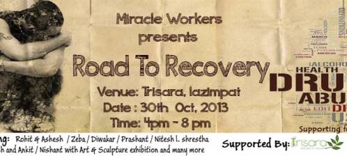 'Miracle Workers' is a group of undergraduates working on a 10 days project in order to spread awareness on Drug Abuse and it's consequences. It presents a fun gig for the better. Featuring Rohit John Chettri & Ashesh Kulung Rai, Dwahcar Raii,Zeba Shah , Nitesh Lal Shrestha, Prashant Manandhar, Yogesh & Enkit Shrestha andNishant Pradhan followed by art & sculpture exhibition. It is a fund raiser event that stands for a cause i.e., ' Fight addiction with music'.