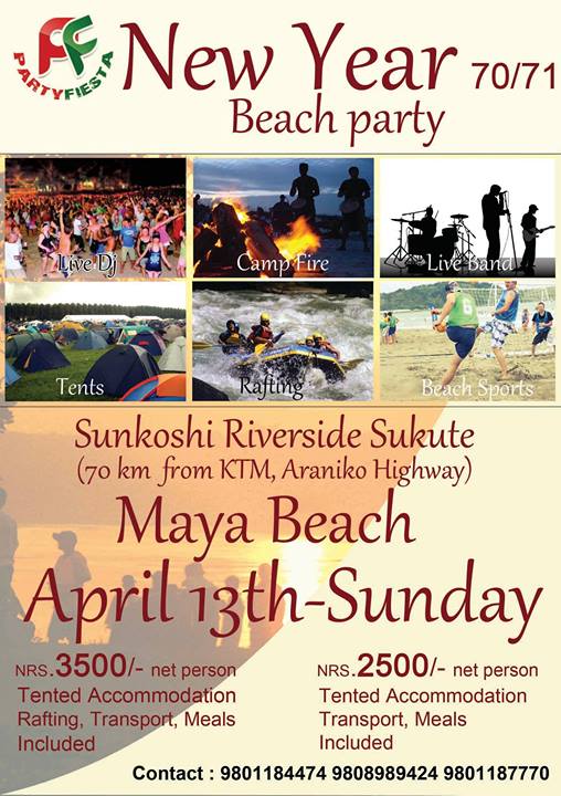 Are you planning to have a fun with your girlfriend or group of friends and are you looking for adventurous and entertaining way to celebrate the New year, Party fiesta got you a perfect package at Maya Beach ( hotel SunkoshiRiverside 70 km from Kathmandu Valley,Araniko Highway)