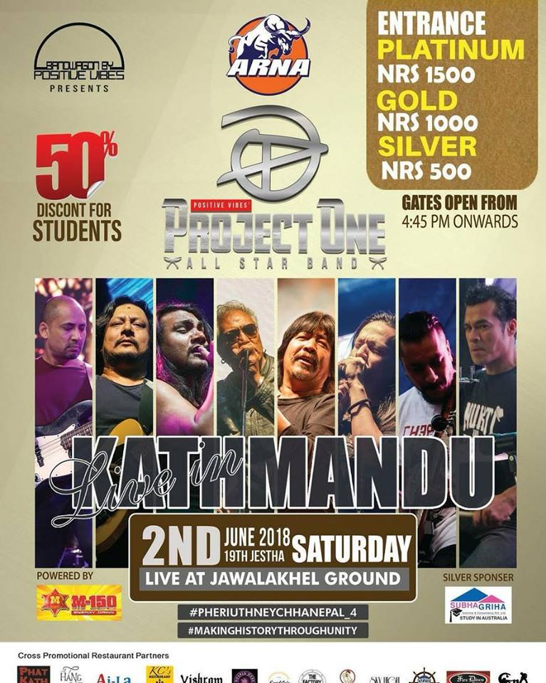 PROJECT ONE is a new band formed amongst the most popular rock band members from different bands and has been established by the founder of Bandwagon By Positive Vibes, Bikesh Kayastha on November 2017.