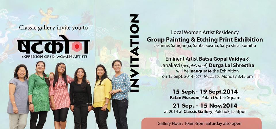 Classic Gallery Present "षटकोण "-Expression of Six Woman Artist A Group Painting and Etching Print Exhibition atPatan Museum Patan Durbar Square , Lalitpur Date: 15 Sept to 19 Sept 2014Classic Gallery Na:tole, Pulchok ,Lalitpur Date: 21 Sept to 15 Nov We would be extreme..