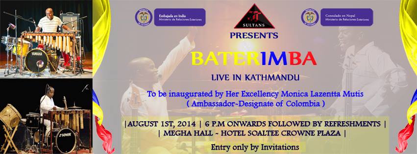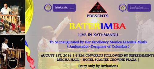Her Excellency Monica Lazzetta Mutis (Ambassador-Designate of Colombia), The Consulate of Colombia in Nepal and JJ Sultans invites you for an extraordinary concert by Carlos Balanta (BATERIMBA - A musicial genius all the way from Colombia https://www.youtube.com/watch?v=4jGuUdCn51I) and for a taste of delightful South American cuisine.