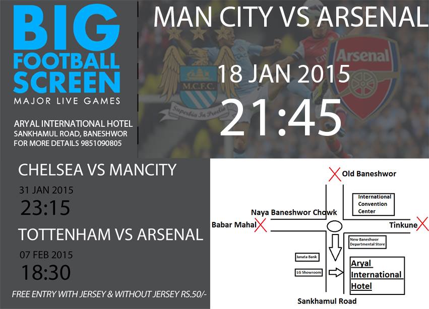 Grand Opening with Man City Vs. Arsenal on January 18, 2014!!! Big Football Screen is an idea to bring a revolution in the field of football screening. We will be screening 16 major football matches this year. Soon after, we will provide entire viewing options to the football fan..