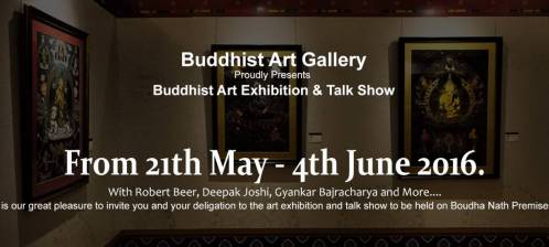 Exhibition starts from 21 may to 4 june for 15 days at Buddhist Art Gallery which is located near Baudha Nath Temple in Dhara Tole. (5 minutes walk from Western Gate of Baudha). Talk Program will be held at Cafe Du Temple Restaurant at Baudha from 10:00 to 11:00 am. (Western Gate of Baudhanath stupa near Monastery with Big Statue of Maitriya Buddha)