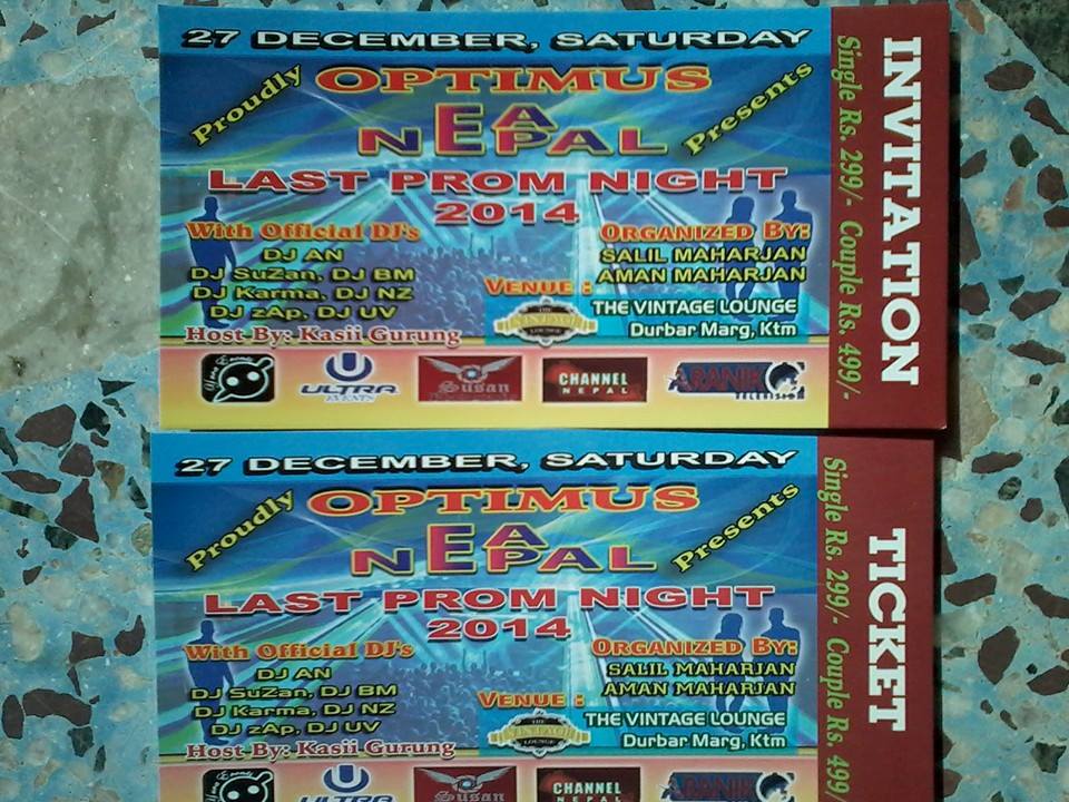AFTER GRAND SUCCESS OFF ELECTRO COUNTDOWN BEGIN Optimus EA Nepal PROUDLY PRESENTS ▃ ▄ ▅ ▆ ▇ █ ♫ █ ▇ ▆ ▅ ▄ ▃... CAMPION PROM PARTY 1 PM ONWARDS @The Vintage Lounge WITH OFFICIAL DJS DJ SuZan DJ AN DJ BM DJ Nz DJ KaRma DJ Žâp DJ ..