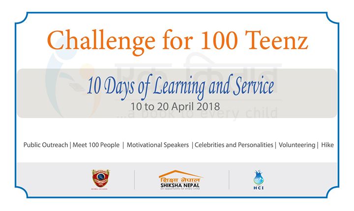 Just after SEE exam, join us at team of 100 Teens who will TAKE up '10 Days Service and Learning Challenge' to be part of largest #reading_movement in Nepal #EkKitab