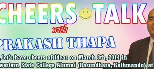 We invite you to the Cheers Talk, where Innovators gather and network at Southwestern State College Basundhara Kathmandu hall, @ 8 am on Saturday, March 8th, 2014. Mark your calendar now.