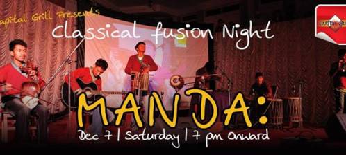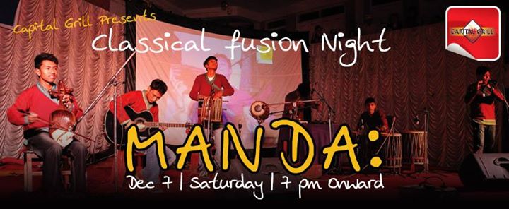 Capital Grill presents for the first time "CLASSICAL FUSION NIGHT" featuring ----- MANDA: ----- a group teenagers from Kirtipur following foot steps of their fathers and highly influenced by classical fusion icon KUTUMBA.. its a must watch show to treat your ears and support young local talents......