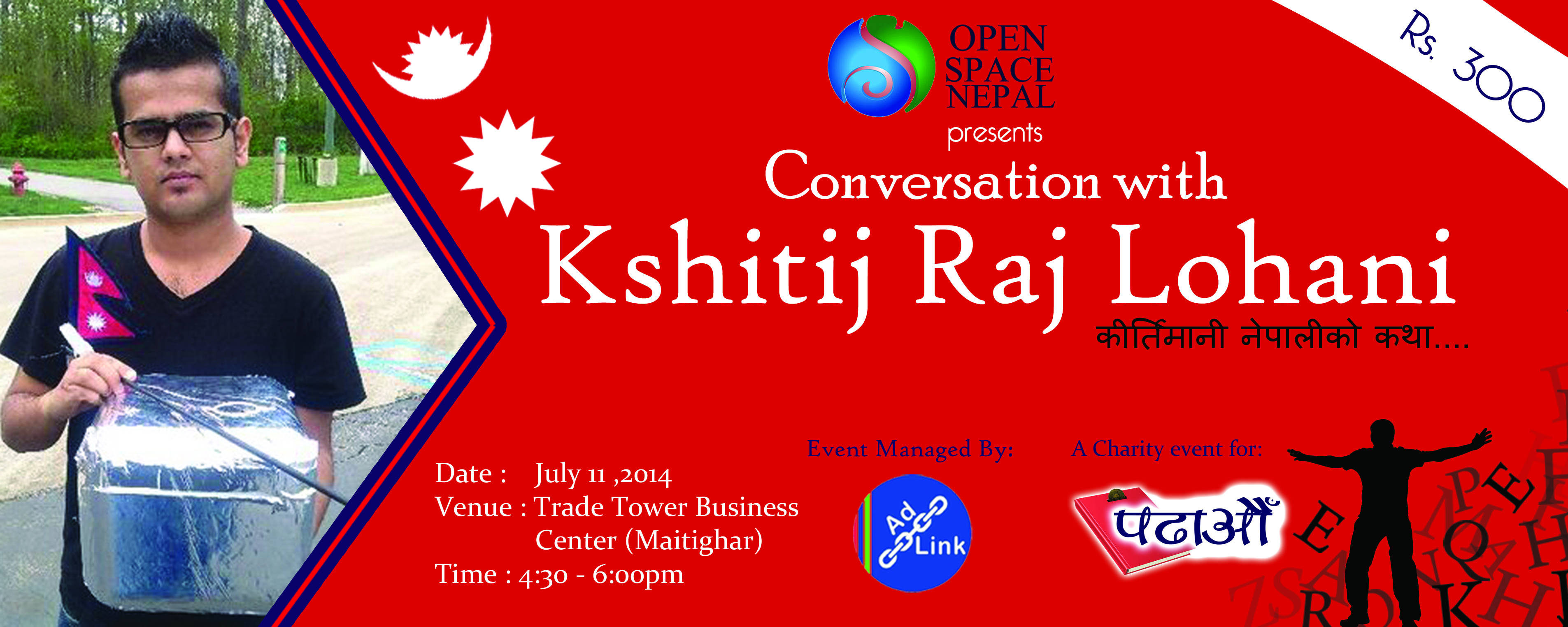 This conversation is an opportunity to know the life story of Kshitij Raj Lohani that include from being thrown out of school for not being able to pay Rs. 500 as tuition fee to winning full scholarship among 50,000 applicants worldwide. It shall not only talk about the success story of Krinjal Space but also reveal upcoming projects of Mr. Lohani. Meanwhile, it also is an opportunity to support an educational campaign Padha’aun as the total fund raised out of this event shall go to educate needy students across Nepal.