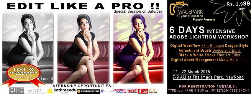 The Image Park presents "EDIT LIKE A PRO - Intensive Adobe Lightroom Workshop" . And, this workshop is mentored by Sumeet Shakya, Fashion Photographer & Retoucher for The Himalayan Times TGIF