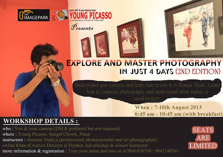- Instructors : Sumeet Shakya (Professional Photojournalist and art photographer) , Afzal Khan (Creative Director at Hyphen Advertising) and a guest instructor