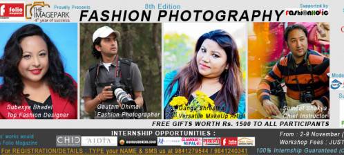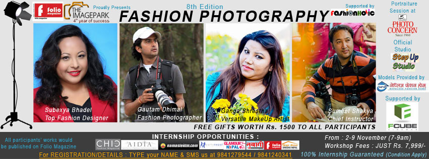 TheImagePark and Folio.Magazine in association with Fashionholic presents this redesigned 8 Days Fashion Photography Workshop's 8th Edition, which still remains the only workshop covering Fashion Photography, that you can find in Nepal and one of the very few that you can find around the world.