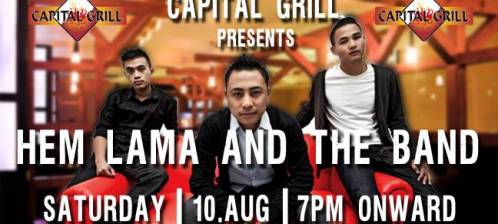 Capital Grill presents by popular demand "HEM LAMA & The Band" performing LIVE tomorrow Saturday Be there with your friends and family to enjoy the evening at your favorite food joint and bar!!! Remember, we serve American Diner Menu and exotic cocktails :) See you all! For reservation call 01-..