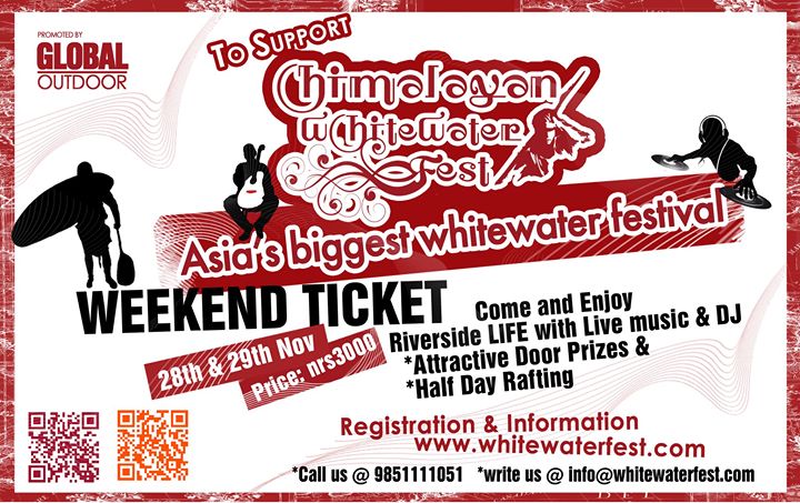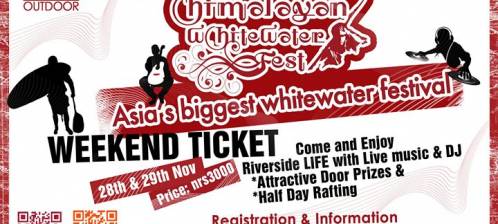 One night-two days celebration for supporting the Himalayan Whitewater Festival 2014. Come be a part of the Himalayan Whitewater Fest and together support and experience the outdoor adventure and whitewater life. We welcome you all to come and show your support and par..