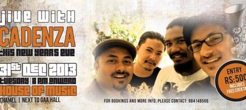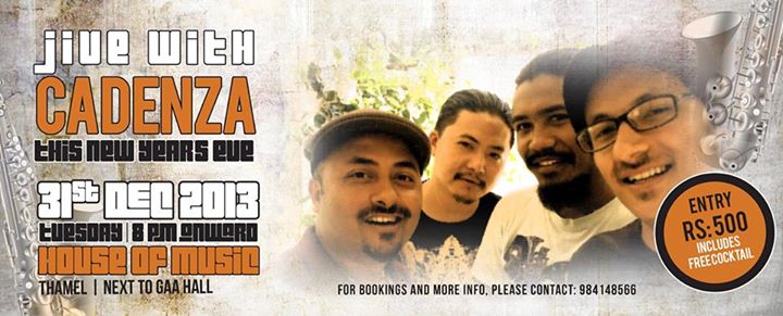 SAY GOODBYE TO 2013 WITH THE ONE AND ONLY CADENZA. COME-FUNK-DANCE THE NIGHT AWAY. RS.500(Included a free cocktail)..