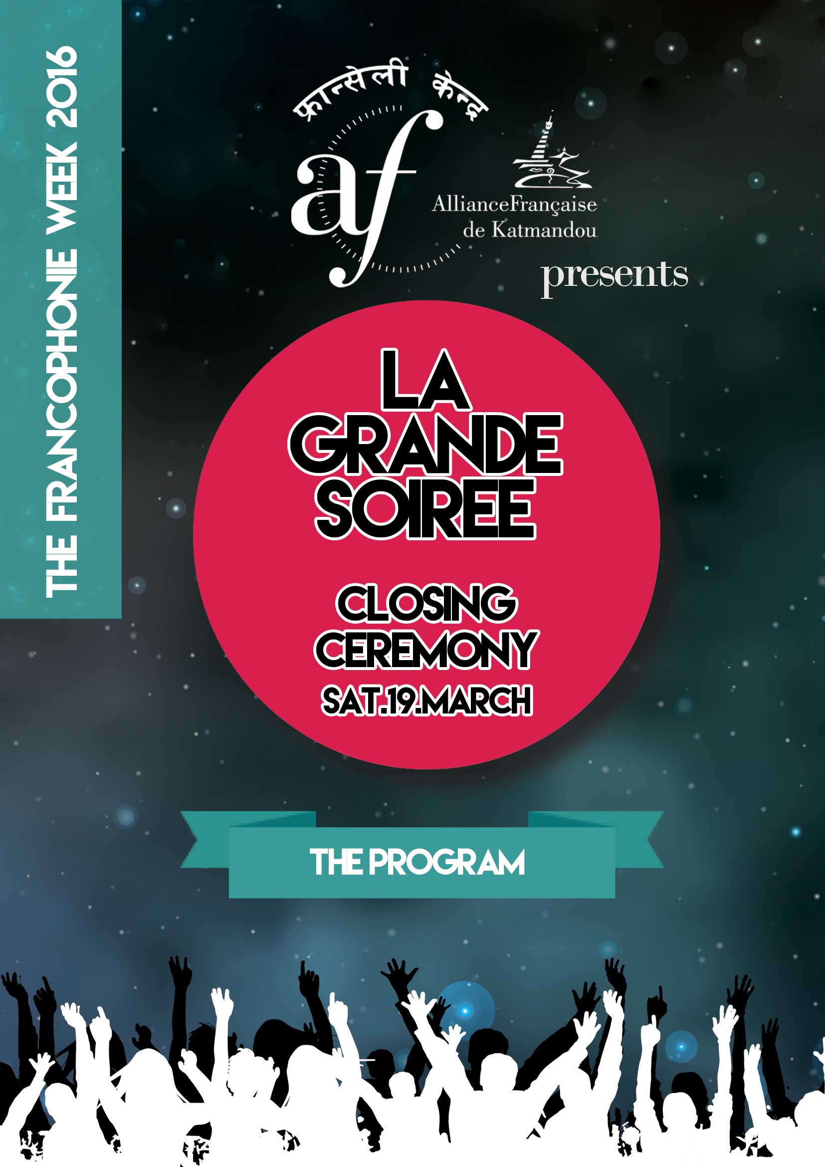 Don't miss "La Grande Soiree" with the concert of the band "Night" at Alliance Française of Kathmandu! FREE ENTRY6:00 PM : OPENING CEREMONY6:15 PM : CULTURAL SHOW7:00 PM : FOOD TASTING (Egypt and Syria)7:30 PM : RAFFLE FIRST DRAW8:00 PM : RAFFLE SECOND DRAW8:15 PM : NIGHT IN CONCERT9:00 PM : AFTER ..