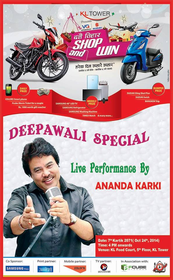 Date: 7th Kartik 2071 (Oct 24, 2014)Time: 4PM onwardsVenue: KL Tower Food Court, 5th Floor, KL Tower..