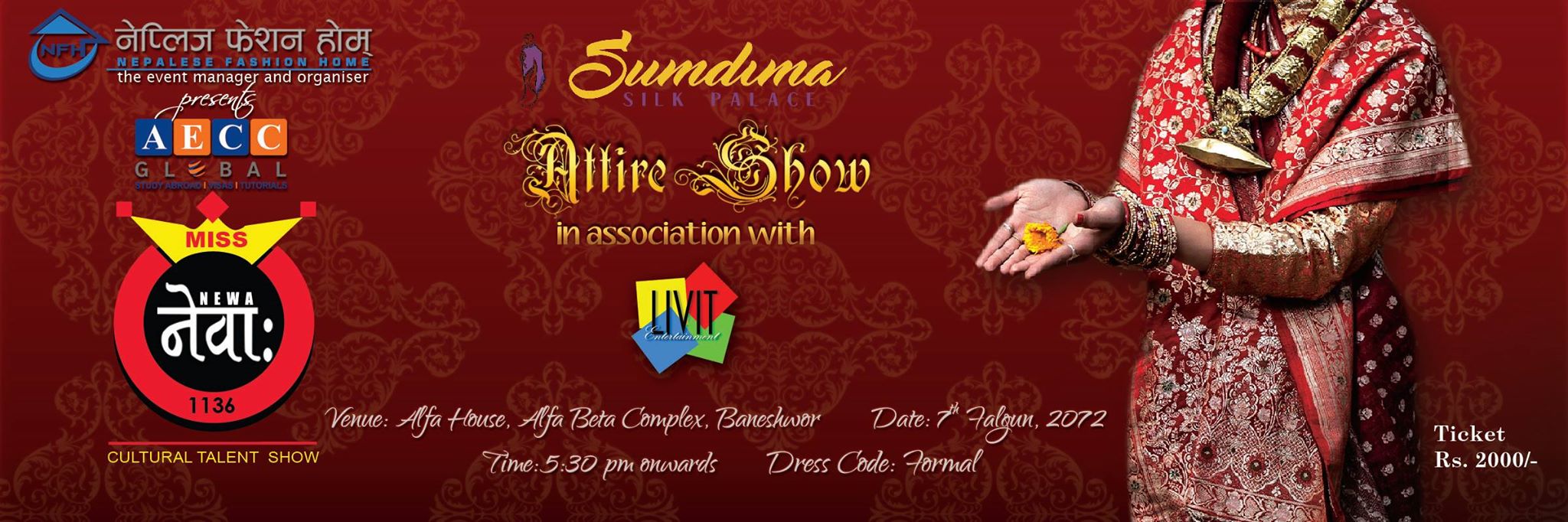 An exclusive Attire Show of the ethnic pageant Nepalese Fashion Home's Miss Newa. A fashion show where all beautiful contestants of AECC Global Miss Newa 1136 will grace the stage, presenting attires for the title IEC Best Attire and they will be claded in gorgoeous silk sarees of Sumdima Silk Palace.