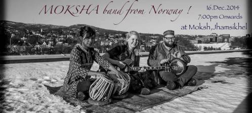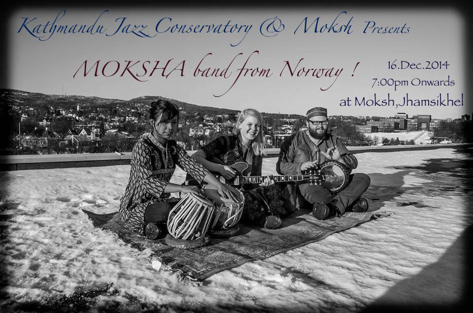 Moksha band from Norway will be performing live at Moksh,Jhamsikhel. On 16 Dec.2014. (tuesday) 7:00pm Onwards check out their profile: https://www.facebook.com/music.Moksha Moksha offers a unique combination of Nordic jazz and Indian raga which wil..