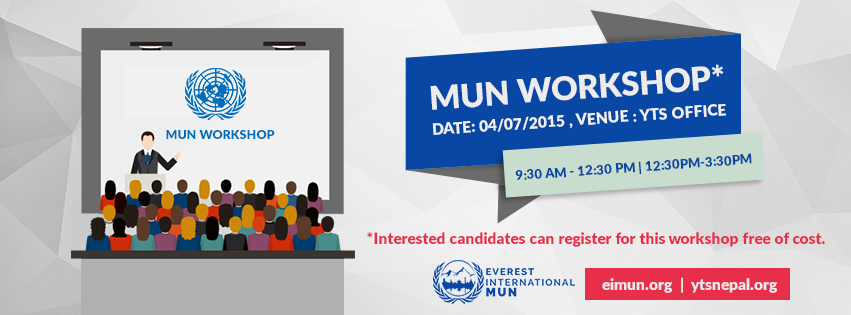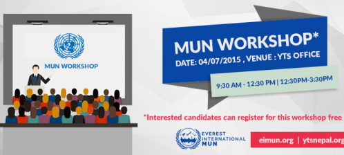 MUN Society Nepal in collaboration with The Everest International Model United Nations is organizing the 5th edition of Beginner’s Level Model United Nations Workshop in line with the objectives and agendas of The Everest International Model United Nations 2015.