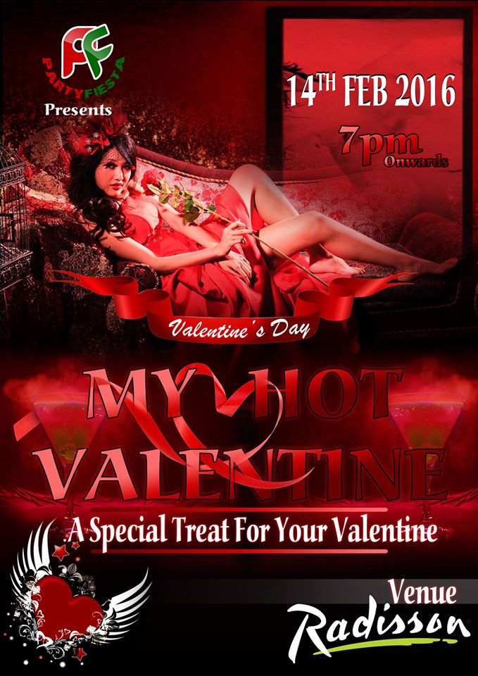 My Hot Valentine is a gala event, organized with a vision to make this wonderful day even more special to all the beautiful couple and the single charming personalities. This event will be a bond and strength of love, why? because the decoration, the ambition, the sweet smell and patiently carved chocolate for all the joining valentines shall stamp a spot of memories in the heart of all. The smoothing and the pumping beats of our D.J Punit will accompany us in every step of this romantic musical evening. The presence of calm and a prosperous evening shall be provided with the cover of our security personal who will be there to assist the gala evening