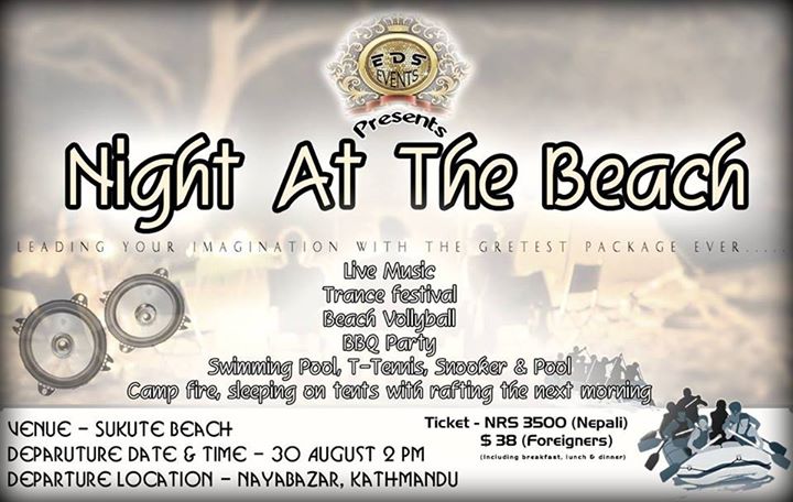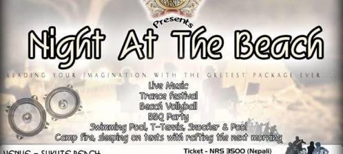 Our event is a beach party with Rafting that will be held on August 30th and 31st 2013, Located at Sukute Beach Resort on the banks of Bhote Koshi River. The aim of the event is to please the guest and put a wonderful mark and memories of the venue and party itself for the people.