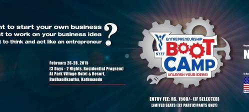 The Nepalese Young Entrepreneurs’ Forum (NYEF) in association with the US Embassy is organizing two three-day residential entrepreneurship boot camps within September 2015. There will be a total of 32 participants in each boot camp.