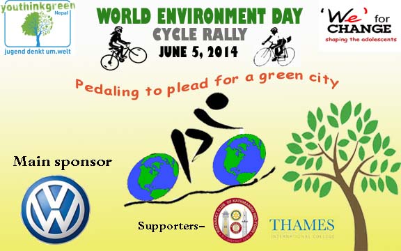 ‘Pedaling to plead for a green city’, will be held on June 5, on the occasion of World Environment Day 2014. 250 youth cyclists will pedal through VW showroom Thapathali from Basantapur Durbar Square to Thames College. The 2 hours long cycling will raise awareness for environmental sustainability for better future. The ride features some of the best and brightest minds working in the areas of sustainability, renewable energy and bicycle advocacy. The team also anticipates to welcome captain of Nepali Cricket Team ‘Paras Khadka’