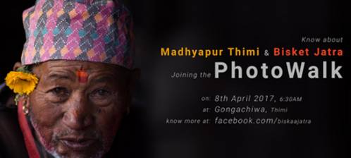 The photowalk would start by gathering at Gwonga Chiwa(Right from Bakha bazar while going to Bhaktapur from purano Thimi), Thimi in April 8th (26th Chaitra). Photographers and photo enthusiasts would gather in 6:30AM and would be accompanied by resource person who would be providing information about the culture and route of Biska Jatra. It would later be helpful for taking photograps during the main event of which the photographs can be sent for Biska Jatra Photo Competition III.