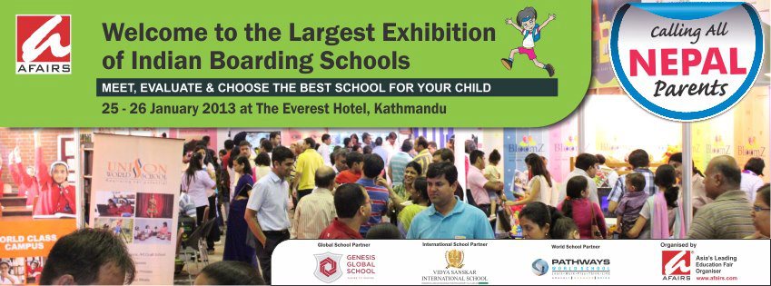 Kathmandu will once again play host to India's largest International & Boarding Schools Exhibition this year known as the 9th India & International Premier Schools Exhibition (IIPSE), the school fair will set up base at the Everest Hotel - New Baneshwor in the city, from 25th January (Friday) till 26th January (Saturday) between 10:00a.m to 6:00p.m.