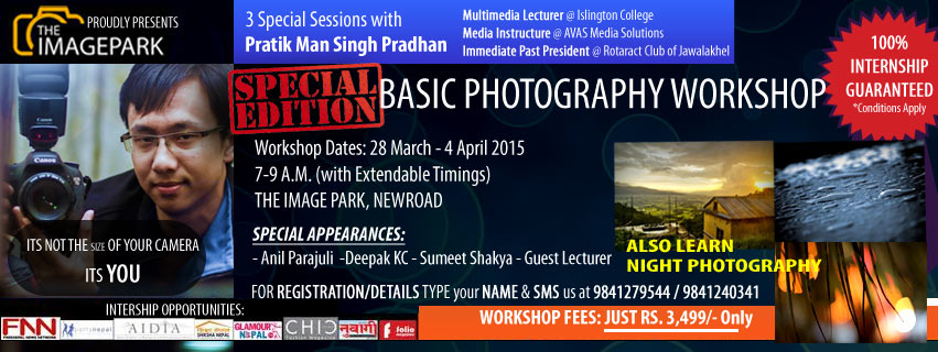The Image Park proudly presents 8 days "SPECIAL EDITION-Basic Photography Workshop". MAIN HIGHLIGHT : Special 3 Sessions with Pratik Man Singh Pradhan
