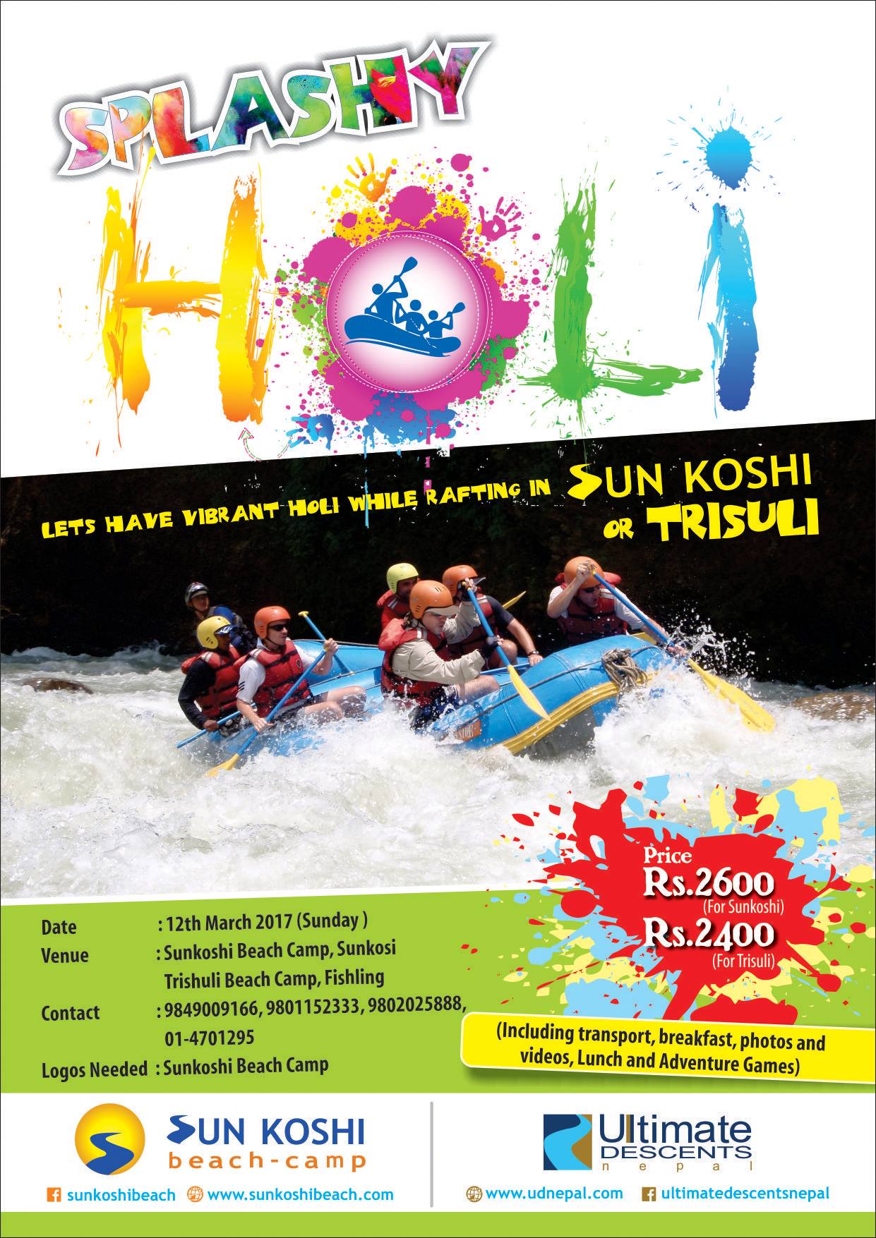 Let's have vibrant holi while rafting in Sun Koshi or Trisuli..