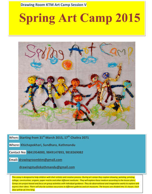 Spring Art Camp 2015, Drawing Room KTM Art Camp Session V
