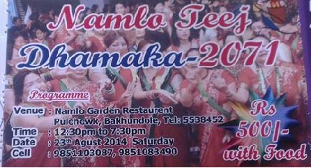 Join us for a festive Saturday to celebrate Teej at Namlo Gardens along with supporting the entrepreneurs from Bihani Social Venture's network who will be displaying at the Bazaar. Lets have fun and also contribute in whatever way we can. We assure you a great time filled w..
