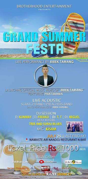 We The Family of "Brotherhood Event","Pratibimba Band" & "Hanchy Kaziee" are Organizing "THE GRAND SUMMER FESTA with the official music video launch of BIBEK TAMANG" with his live performance & many other musical events......