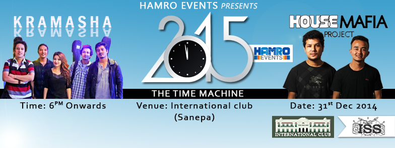Hamro Events Presents THE TIME MACHINE Come and celebrate upcoming new year with the complete new management team for new taste of the event. Live Acoustic to be Performed By : KRAMASHA - NEPAL Facebook : https://www.facebook.com/kramashanepal Youtube Channel : https://www.youtube.com/user/KRAMASH..