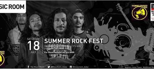 "Summer Rock Fest " Get Ready to Rock WIth Nepali Rockers Tumbleweed who will make their debut in Dubai. They will be supported by Global Village Band Competition Winners "Up The Ante", Filipino Hard Rockers "Bulletcells" and "Phoenix" Dubai's Best Kept Secret. The Night will be an awesome Rock Fest..