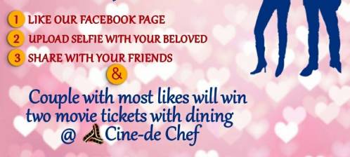 COUPLE WITH MOST LIKES WILL WIN TWO MOVIE TICKETS WITH DINING @ CINE-DE-CHEF, CTC MALL.