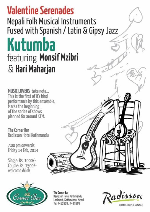 For all the LOVERS of MUSIC !!! Come witness the FUSION >..< KUTUMBA: The Most Popular Nepali Folk Musicians. Monsif Mzibri: Classical Spanish Guitar Maestro. Hari Maharjan: Project? Also the pioneer of Gipsy Jazz in Nepal...