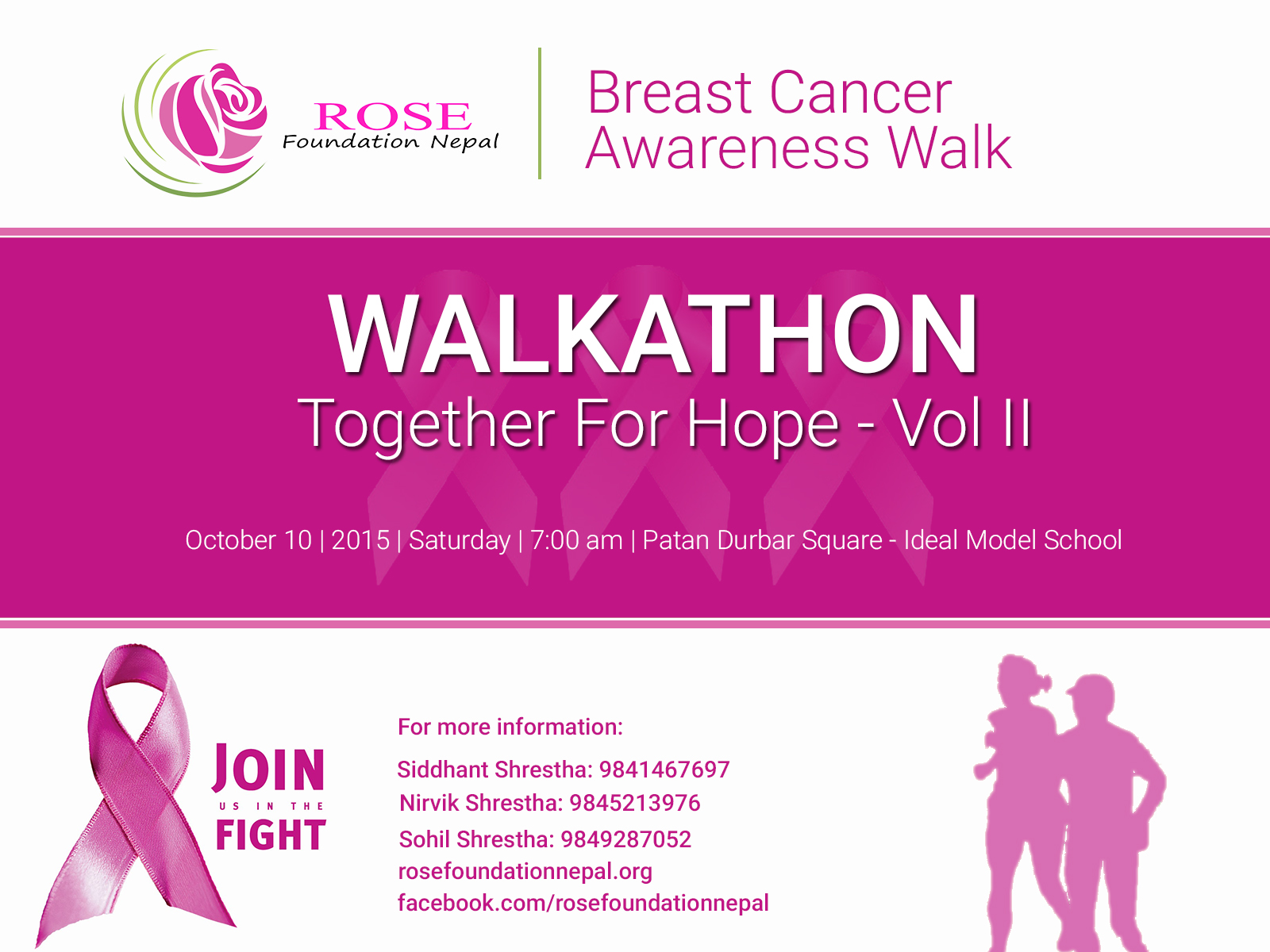 WALKATHON - "Together For Hope - VOL II" aims to spread awareness about breast cancer and promote Breast Self Examination. Every participant who participate for the walk will receive a free t-shirt, water and first aid if needed. Hope to gather all to celebrate WALKATHON - "Together For Hope - VOL II" (Breast Cancer Awareness).