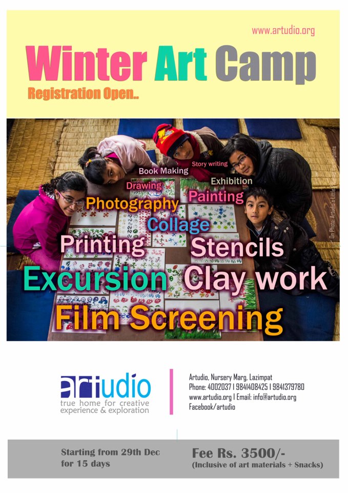 Artudio “true home for creative experience & exploration” in association with “Khushi Stationary” is again coming up with "WINTER ART CAMP 2012". This camp gives joyful platform for your children to know and spend time through the various visual art activities to experience and explore their creativity. This Art camp is conducted by a team of professional contemporary Visual Artists and Photographers.