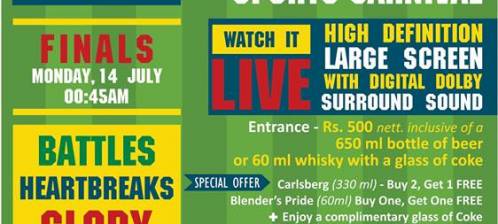 Watch Argentina vs. Germany play in one of the world's biggest sports carnivals LIVE ! at The Corner Bar, Radisson Hotel Kathmandu. High Definition Large Screen with Digital Dolby Surround Sound. Entrance Rs. 500 nett with lots of exclusive snacks, drinks and other offers. For more info. contact 4411818 Ext. 1330 /1301